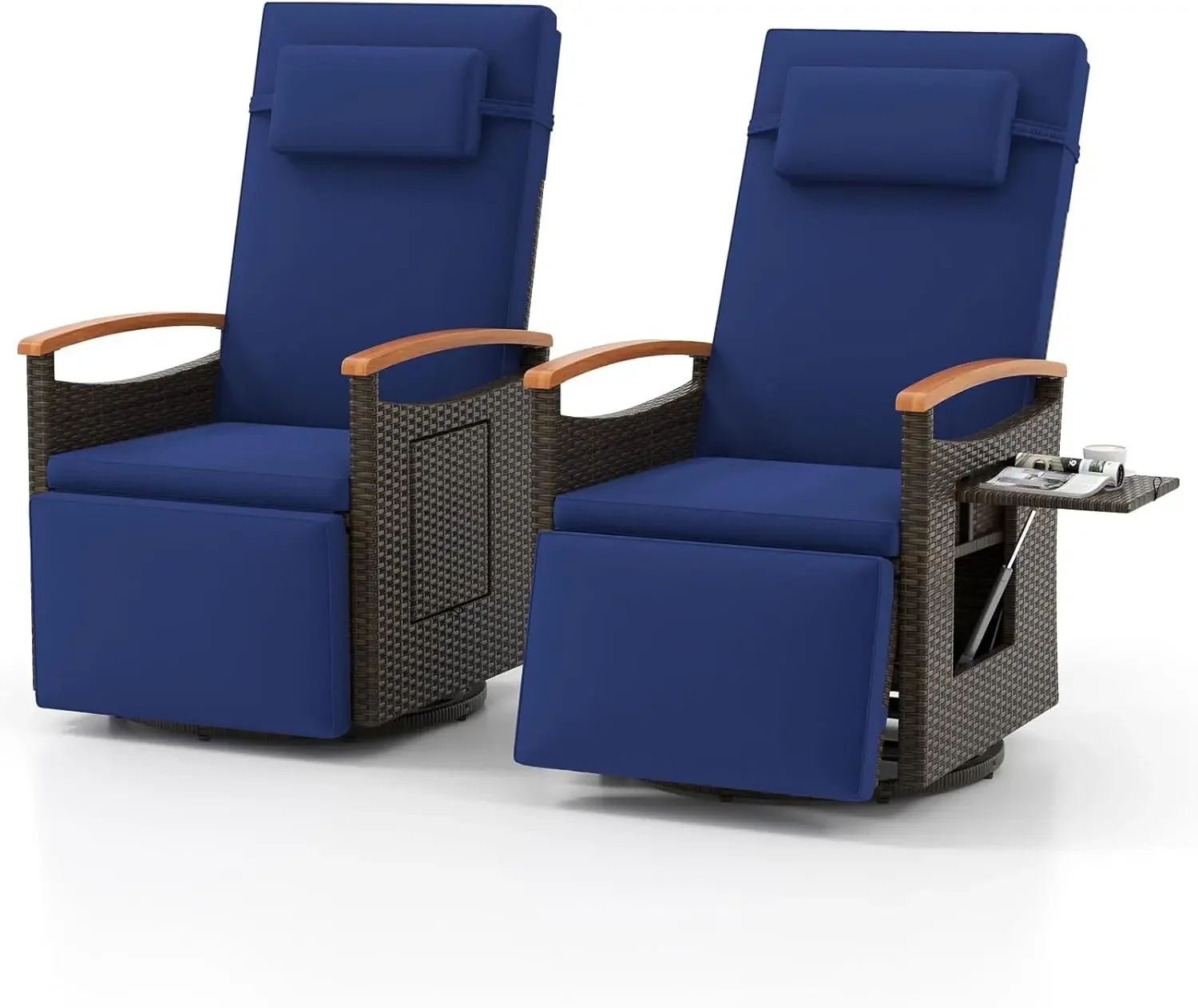 - Easy to Recline & Swivel: The outdoor swivel recliner features 150° adjustable backrest and footrest that allow you to find a desired angle for optimal comfort. With the 360° swivel base, you can easily turn in any direction. The acacia wood armrests with cut-out handles not only add comfort but also help you stand up.